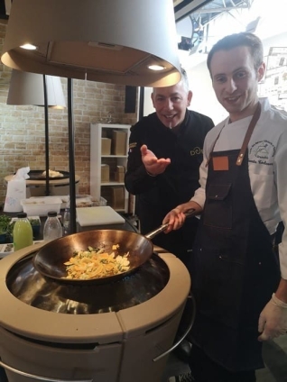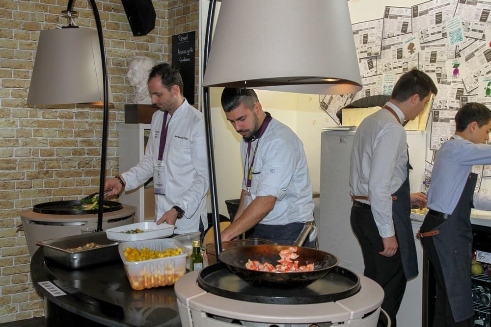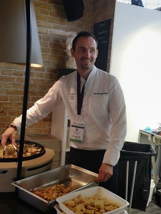 Cuisine ouverte sur le stand, nous avons accueilli les chefs des Disciples d'Escoffier Grandes Alpes pour ravir les papilles de nos visiteurs ! Au menu sur les différents jours : lavaret-écrevisses-yuzu, suprême de caille, foie gras poêlé et fricassée de champignons ou bien encore lotte marinée au citron vert et sel fumé, gambas à la plancha, wok de légumes d’hiver...