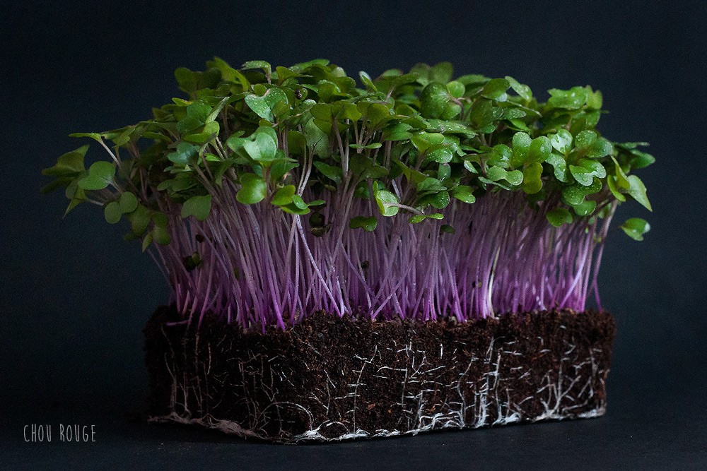 Frisé et non pommé, le kale est la variété de chou la plus proche du chou sauvage. Pour réaliser un pesto original et chargé de nutriments, passez les feuilles débarrassées de leur côte centrale au mixeur. Utilisez des micropousses accompagnées d’amandes ou de noix de cajou, de parmesan et d’huile d’olive. Pour un goût plus soutenu, agrémentez le tout d’ail et de citron.