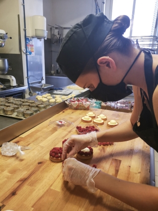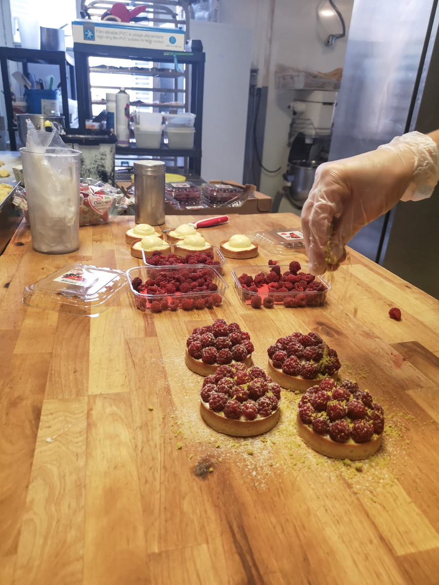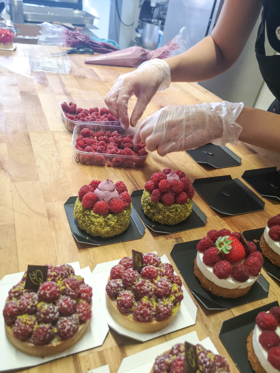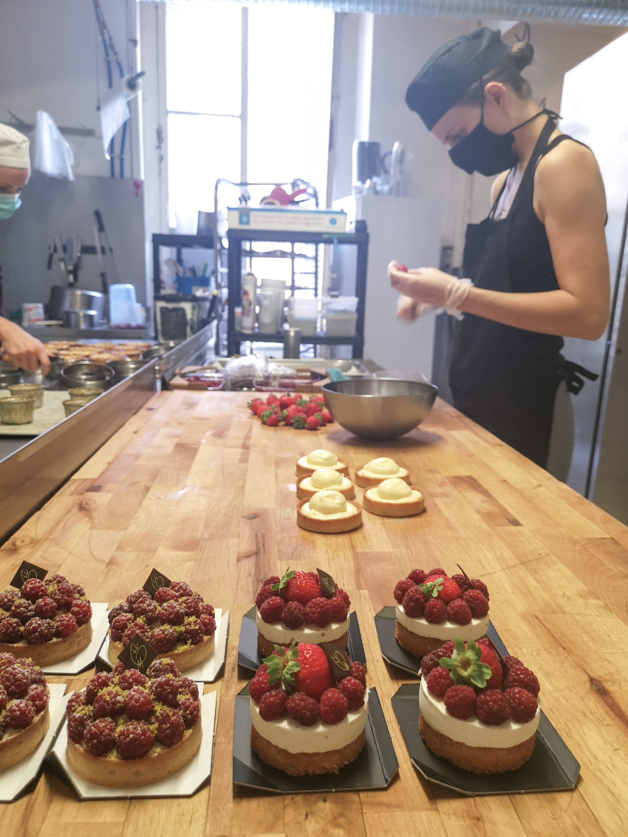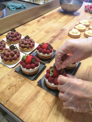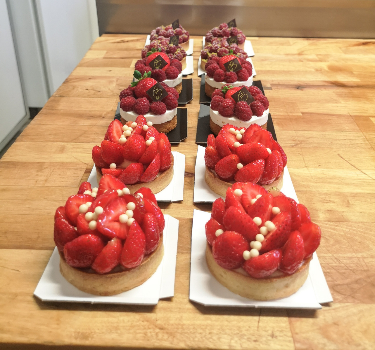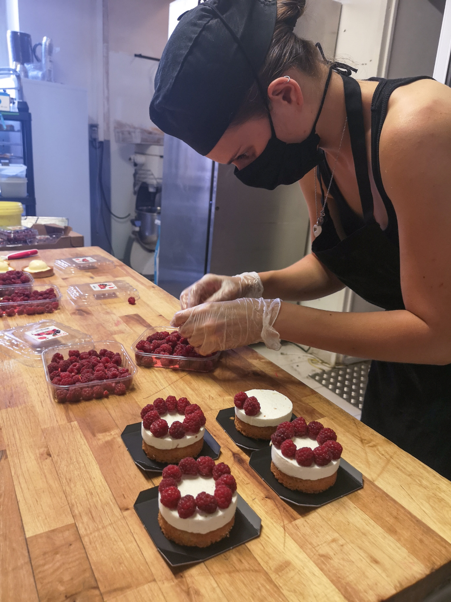 Ce qui reste aussi ce sont les valeurs : la volonté de respecter les saisons, de composer avec des produits locaux et de qualité. « Fraîcheur et qualité des fruits et légumes sont deux conditions primordiales pour créer. Que ce soit pour une tarte, un sorbet ou un sandwich, on doit pouvoir donner le meilleur à nos clients. C’est pour ça qu’on fabrique quotidiennement, et de façon artisanale, nos pains et pâtisseries. Et si ce n’est pas la saison, on fait autre chose… » lance Guillaume. Il ajoute, « On aime souligner à notre clientèle qu’il s’agit de producteurs locaux. C’est un vrai plus et en accord avec nos valeurs depuis le début. En ce moment on profite des dernières fraises et framboises de production locale pour faire nos tartelettes. Ensuite, on passera sur des produits d’automne ».