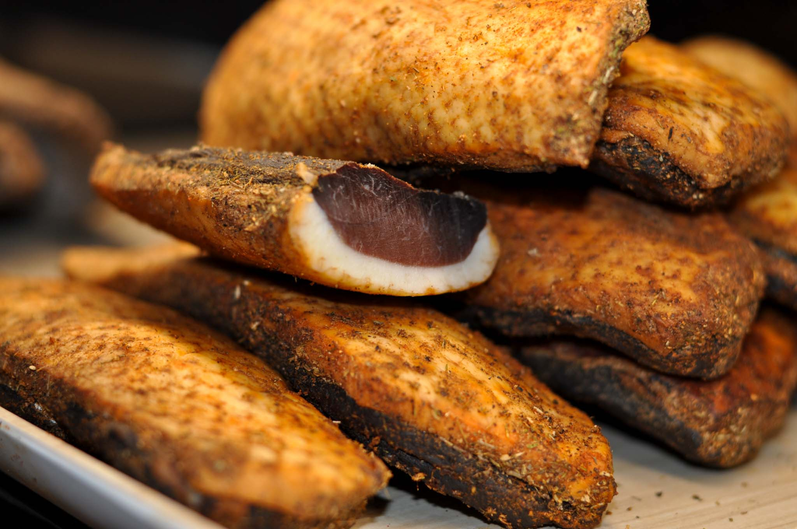 Côté charcuteries, les mets ne manquent pas : pâtés en croûte, magrets (séchés, fumés, marinés au vin rouge), grattons… Certaines préparations se distinguent par leur gourmandise comme les rillettes de canard au foie gras ou la tourte boudin-pommes. « On prend vraiment plaisir à être créatifs, à élaborer de nouvelles recettes », explique Sandrine.