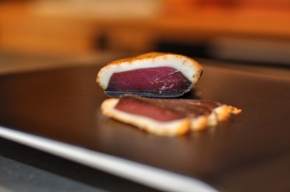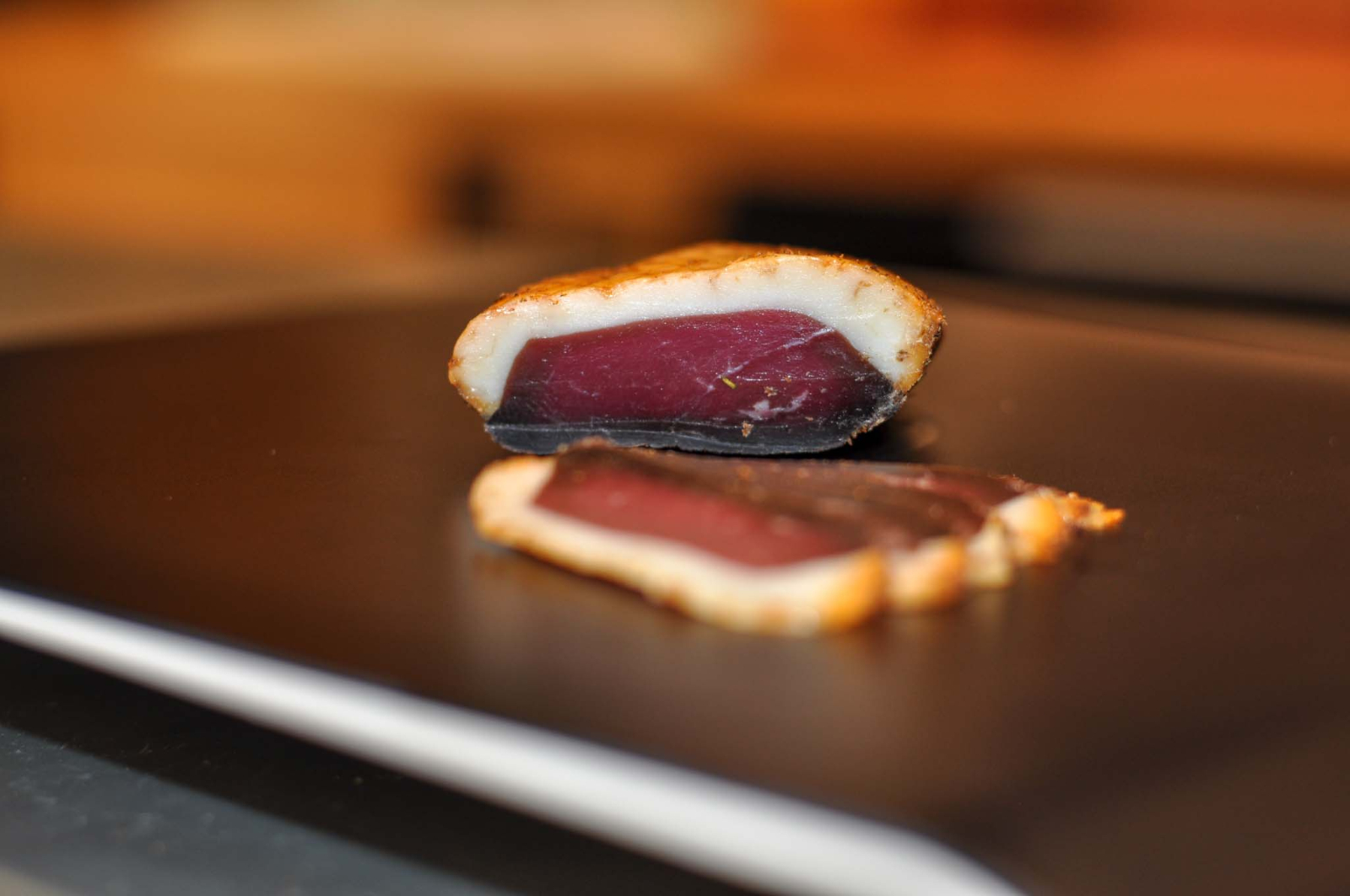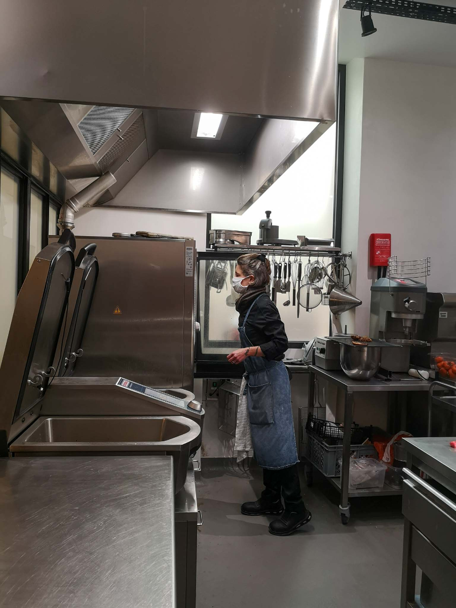 Si l’enseigne affiche distinctement son identité de Charcuterie, Frédéric ne manque pas de souligner que l’établissement fait également restaurant. C’est à l’arrière de la cuisine, dans une pièce habillée de pierres bordelaises et surplombée d'un plafond de verre, que la dégustation prend place. « D’ailleurs quand le confinement sera passé, on souhaiterait embaucher un cuisinier pour compléter l’équipe », ajoute Frédéric.