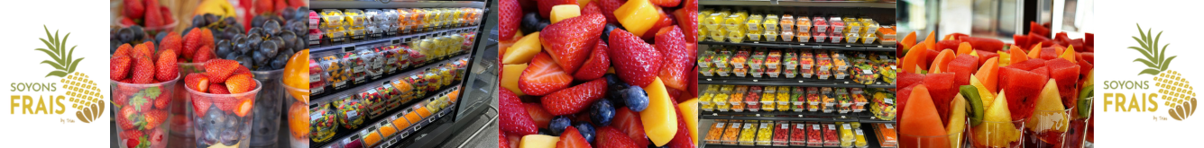 La Maison Trias vous propose sa nouvelle variété de produits SOYONS FRAIS : Ananas, Fraise, Melon, Myrtille, Mangue, Noix de coco ou encore Carotte et Choux râpés, rondelles de Concombres et Mélanges de légumes pour cuisine.